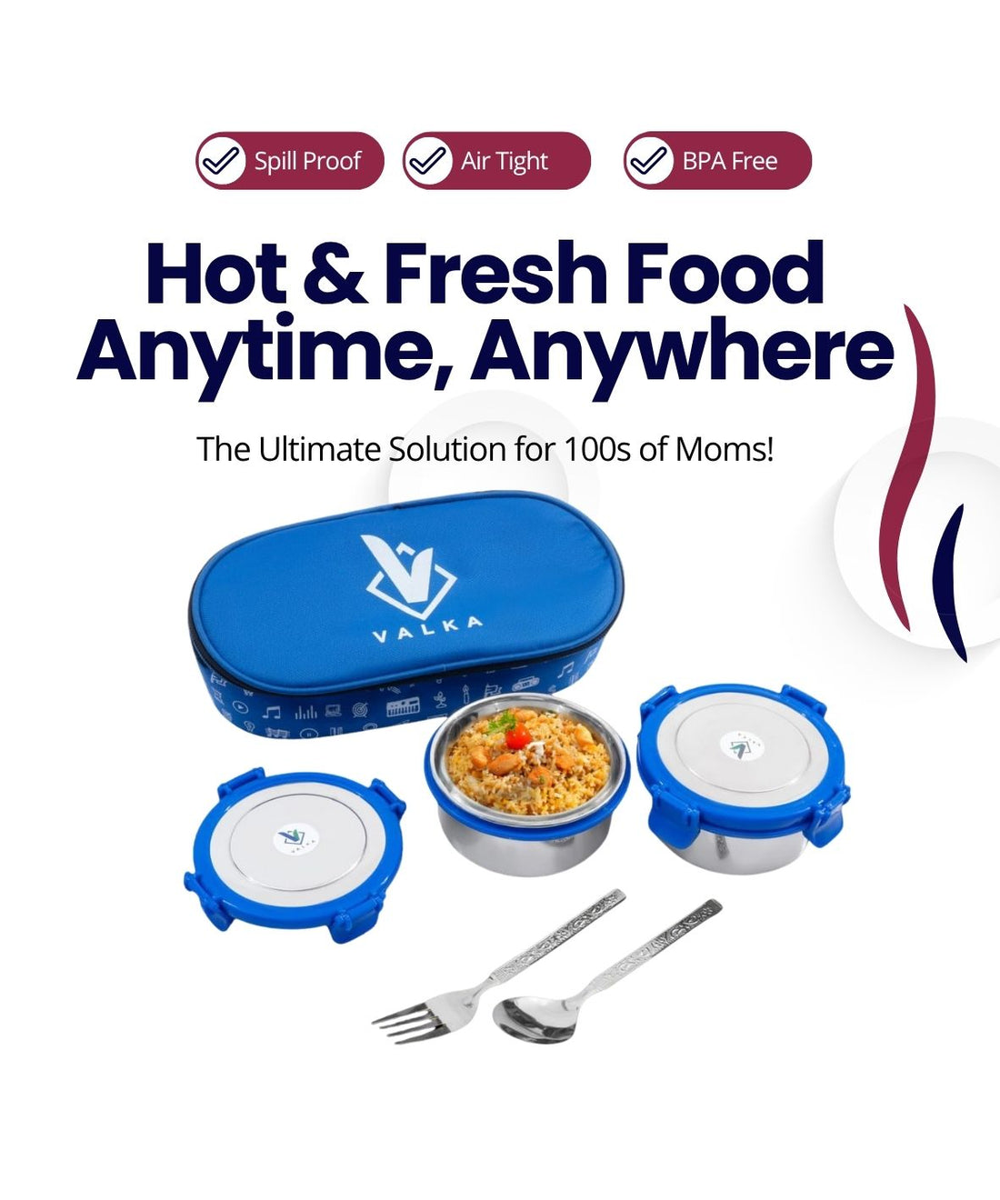 Valka Fresh steelo lunchbox for office , school , kids , men , women 3 Containers Lunch Box (1400 ml, Thermoware)