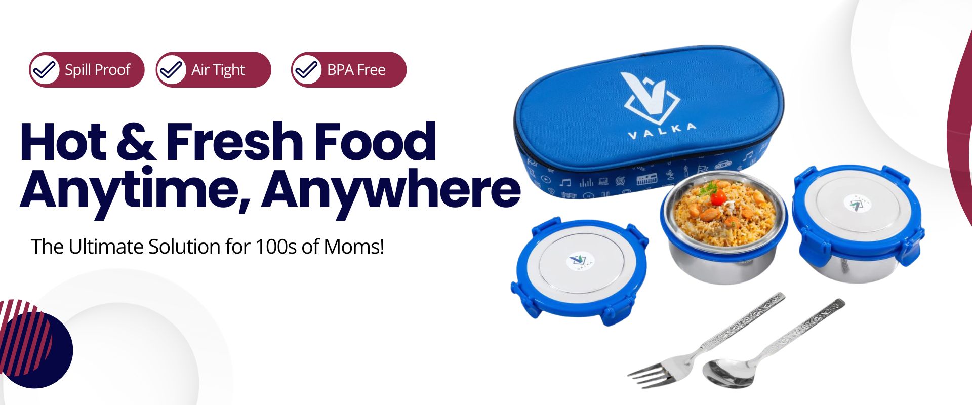 With a strong commitment to innovation and quality craftsmanship, we use food-grade materials and modern production techniques to ensure our tiffin boxes meet the highest standards of safety and performance. Whether it’s for school lunches, office meals, or travel, Valka tiffins are built to be your reliable companion.